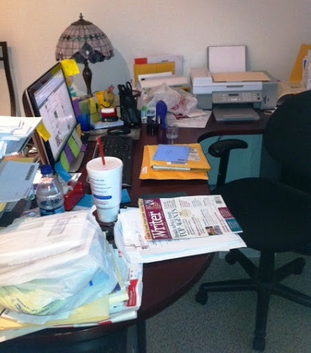 So all in all, I’d say this was not a bad week, at least in terms of my writing. But, outside of my writerly world? Well, take a look at my desk and guess what I’ll be doing tomorrow.